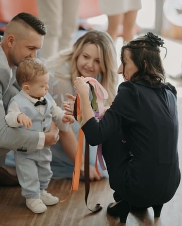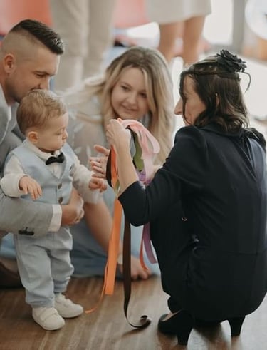 Ceremony Creation: Preparation and writing of texts, I will help you to choose the ritual(s) (1 or 2) to symbolize the baptism, the commitment of the godparents, and/or the godmothers, suggestions for accompanying music, and template.