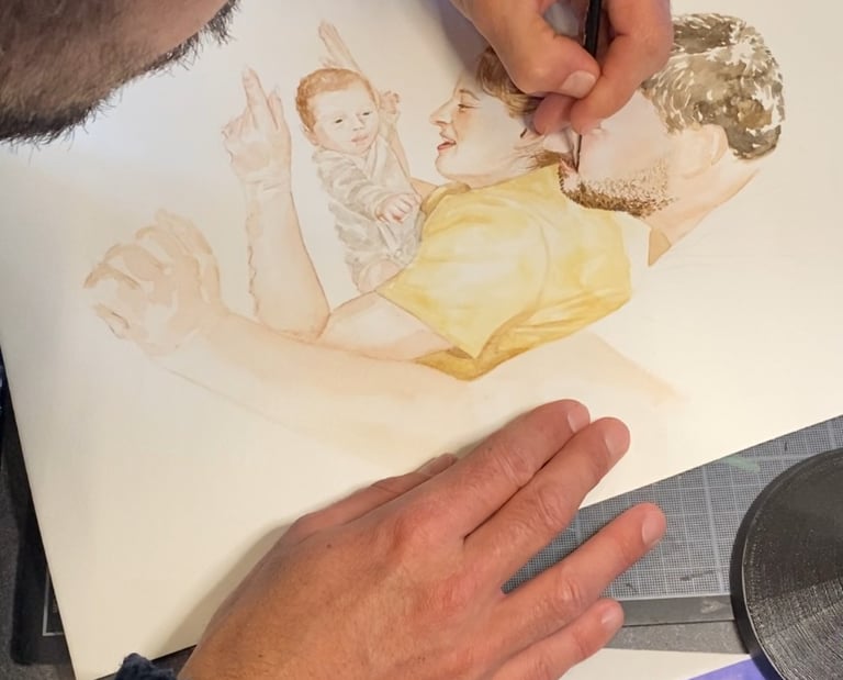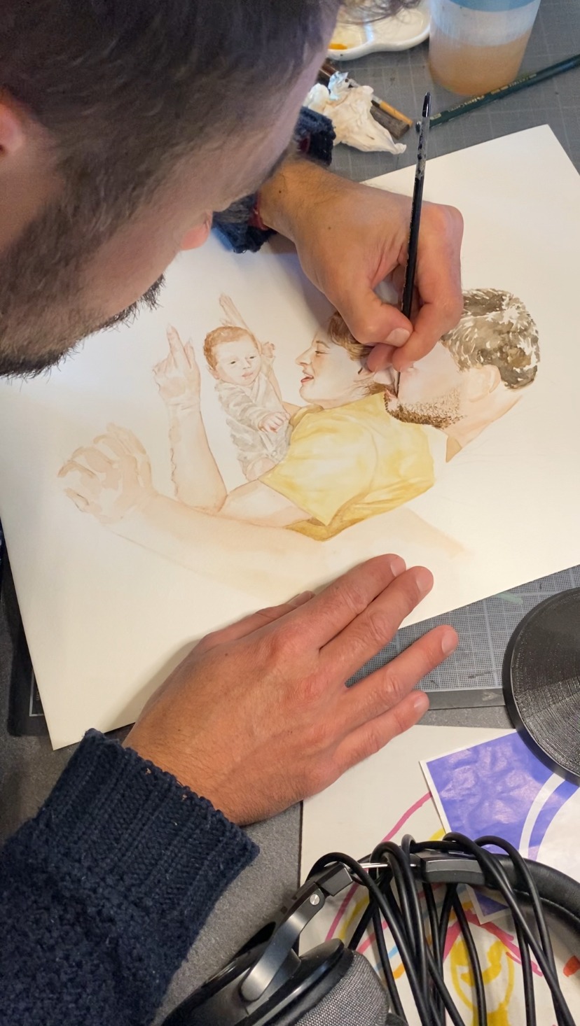 Yohann réalise une aquarelle à partir d'une photographie de votre choix de votre joli jour.